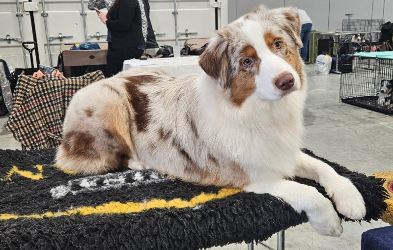 Dcc, Excellente tête, oreilles très expressive, belle encolure, Excellente proportions d'ensemble, excellente ossature et angulation Mouvement régulier de bonne amplitude et de bonne poussé